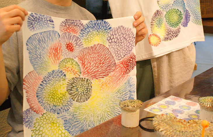 Here you can discover the beauty of traditional Bingata dyeing. In addition to crafts, kimonos and sashes, dyed everyday and interior items are also available. And try your hand at dyeing using a fossilized coral to stamp colorful patterns onto t-shirts, tote bags and more.